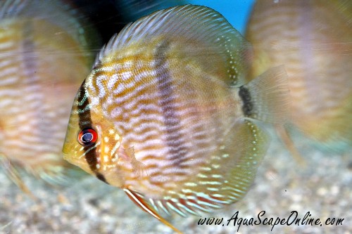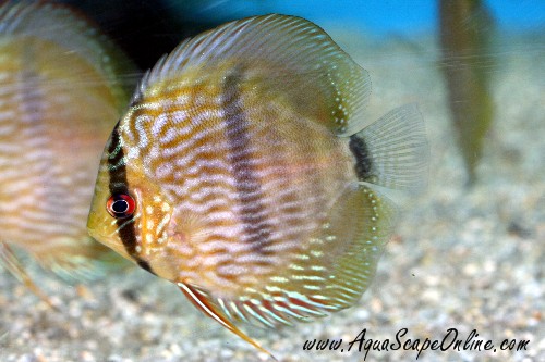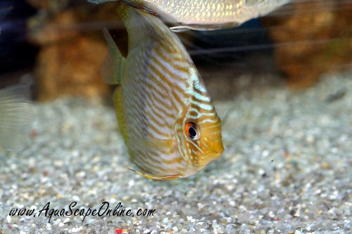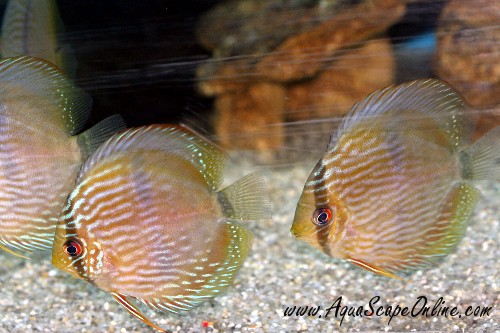 These are wild Heckel Discus from Brazil. Showing amazing color for juveniles.