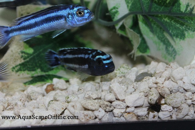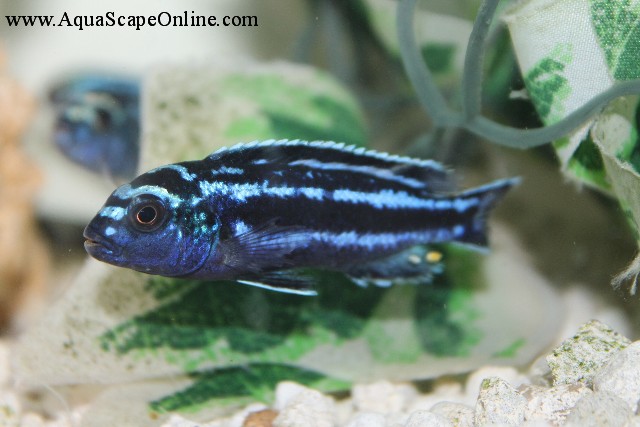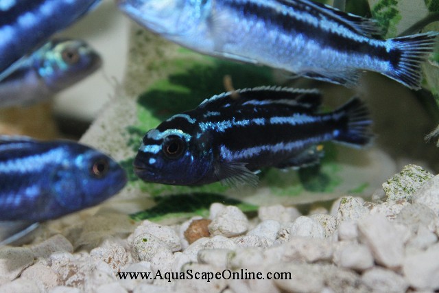 This mbuna is often confused with M. johannii. One important distinguishing characteristic is that females are not orange, whereas femaleM. johanii are. Both male & female M. cyanerhabdos are colored the same; however, males may have more intense coloring, particularly in dominant or sexually active males. Another key distinguishing feature of M. cyaneorhabdos from M. johannii is the lack of vertical stripes.