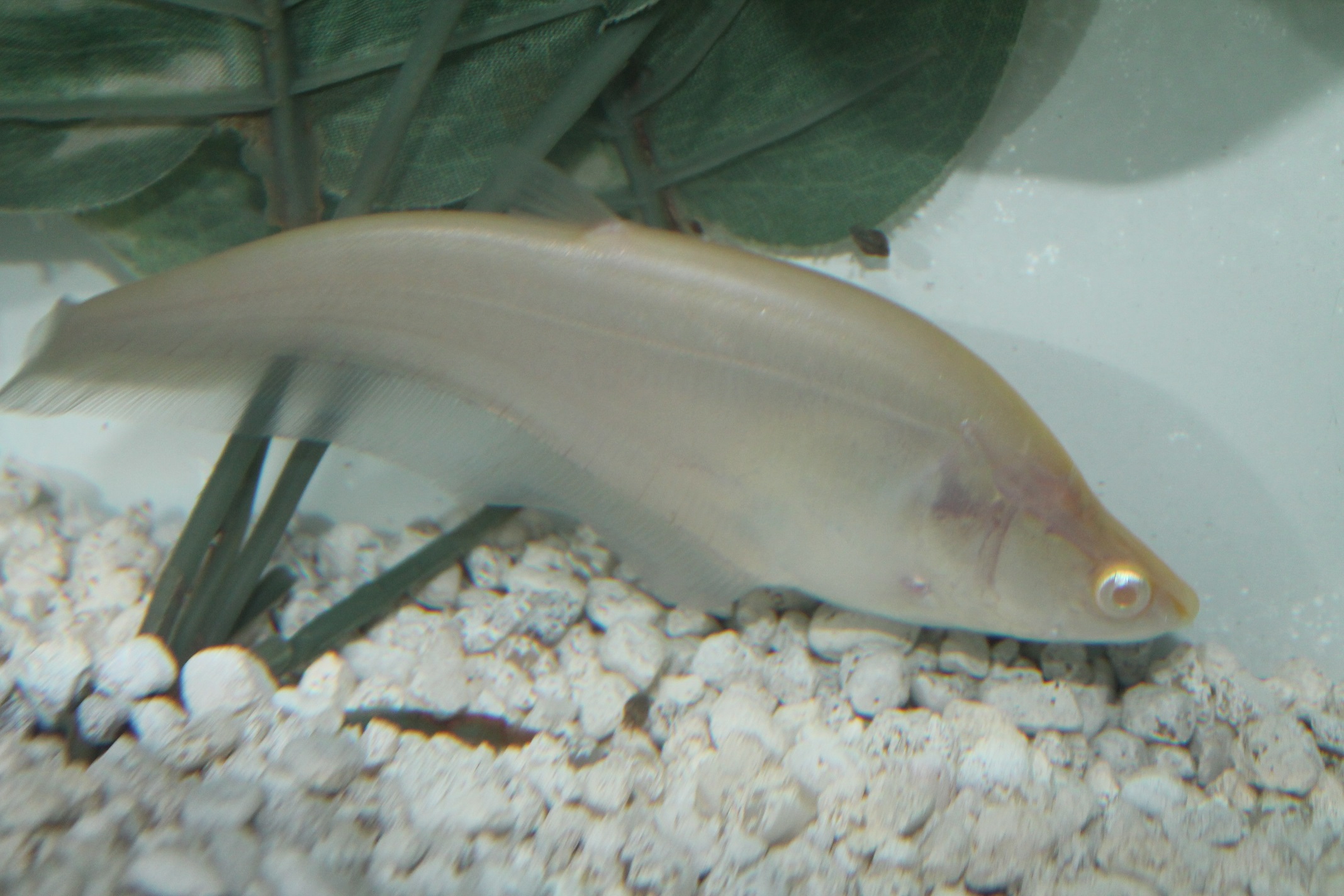 Chitala ornata, otherwise know as a featherback fish, or Knife fish, is quite an interesting species. They are a nocturnul species, so the aquarium should be set up with places for the Knife fish to hide during the day. Much like its counterparts, the Albino Knifefish, can get to over 3 feet. The featherback fish should be kept in an aquarium with 75-82 degrees. They are carnivores, and will attempt to eat anything they can fit in their mouth. A varied diet, much like they have in the wild, worms, fish, small shrimp even pellets are a great diet for The Clown knife fish. Albino Knifefish are best kept in schools when they are juvenille, however, as they become adults they tend to be more active alone. So a small school, when small, will fill a tank beautifully when they are adults.