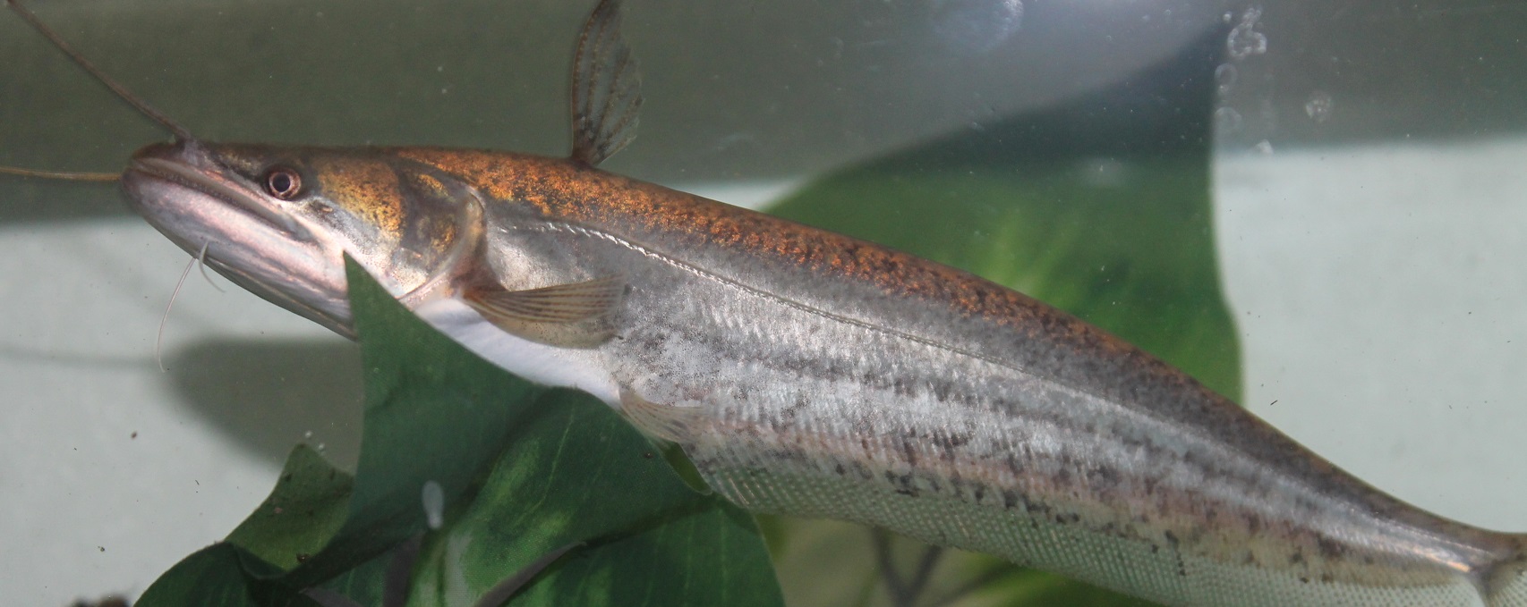 The Wallago Catfish, also known as the Helicopter catfish, is a large predatory catfish. The attu has a large mouth and can devour fish at least half its size. When feeding it is important to keep hands away from The Wallago's mouth, it has a very strong bite and several teeth. In the wild, it can eat such things as small ducks and dogs. A true monster catfish. The Helicopter catfish has been known to reach sizes of almost ten feet. Take care when setting up the tank, as Wallago Attu has been known to jump.