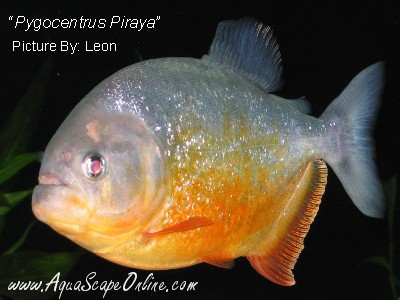 The Piraya is the unchallenged king of all Pygocentrus piranha's (and from all carnivorous piranha's, only Serrasalmus Manueli can reach similar sizes), it is one of the biggest piranha's known. The Piraya is very similar in appearance to the Redbelly, with the exeption of a tufted adipose fin, unique to this species only, the more abundant, flame-like coloration on the sides, its massive, far more powerful lower jaw, and its silvery eyes (as opposed to P. Nattereri's red eyes). And it can grow almost twice as large as P. Nattereri.