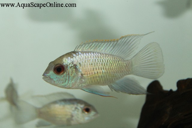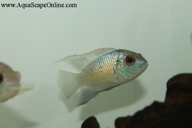 The most beautiful and distinctive feature of the Blue Acara is the electric, blue-green, iridescent markings over their operculums (gill covers). They have metallic, gold-green hued scales on their flanks that become translucent at their fins.